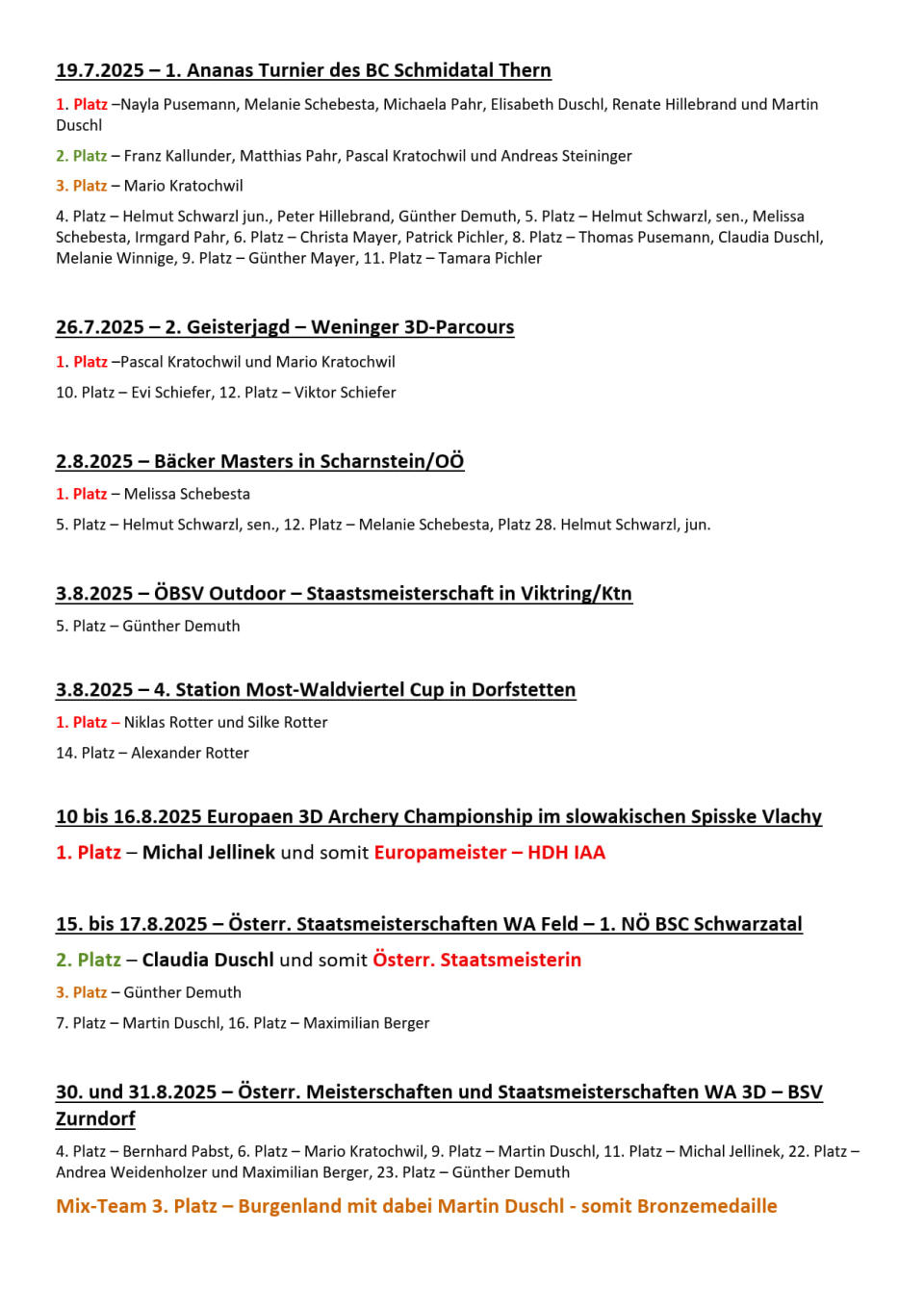 Erfolge 2025